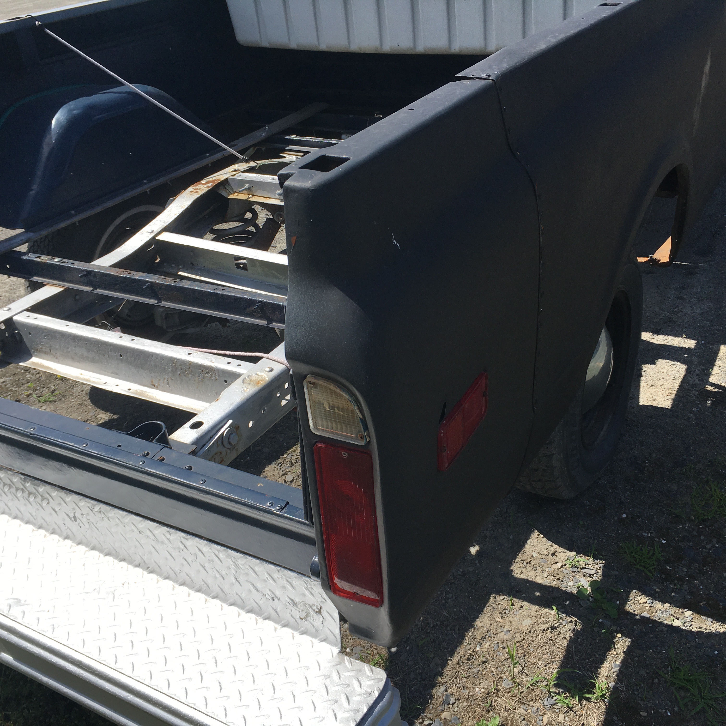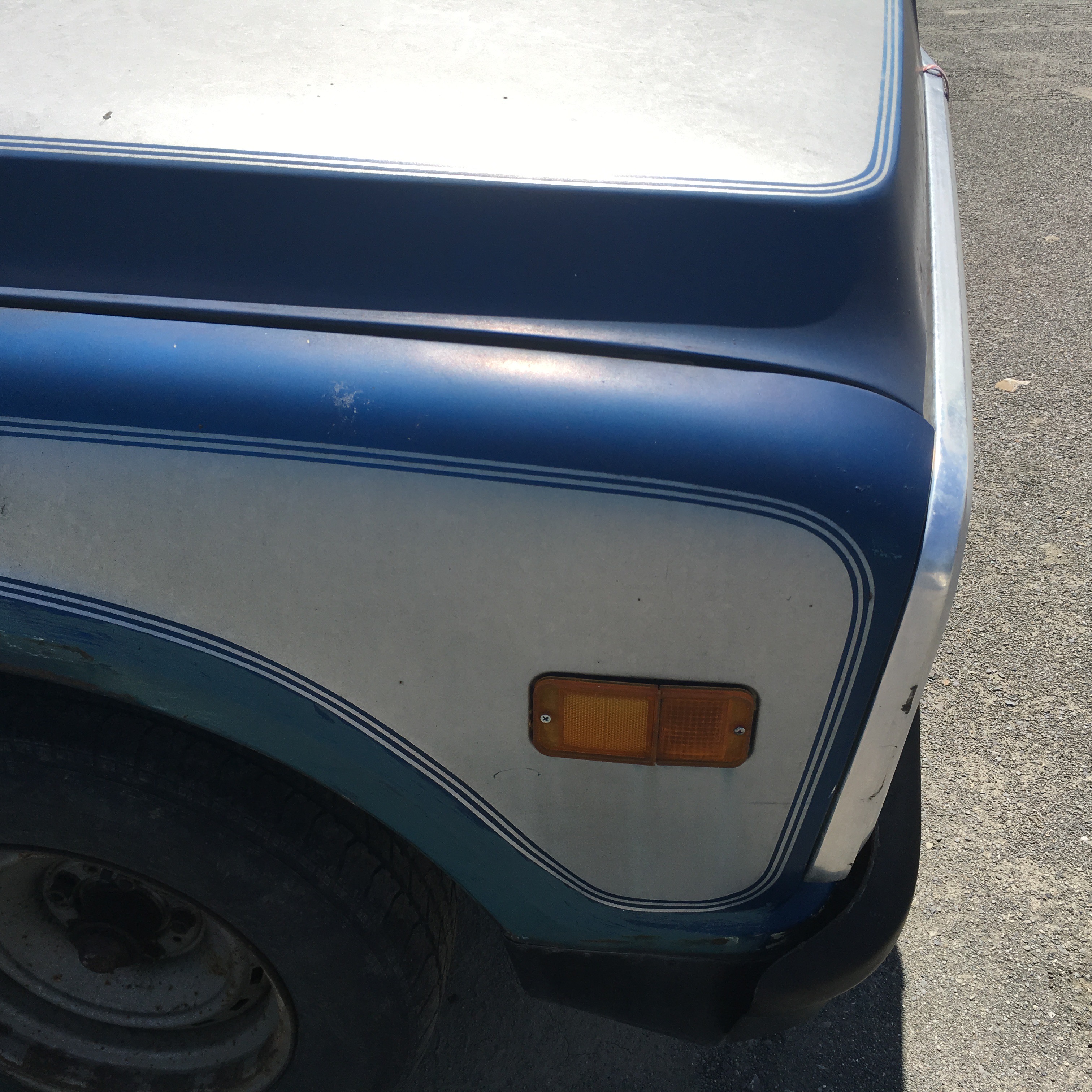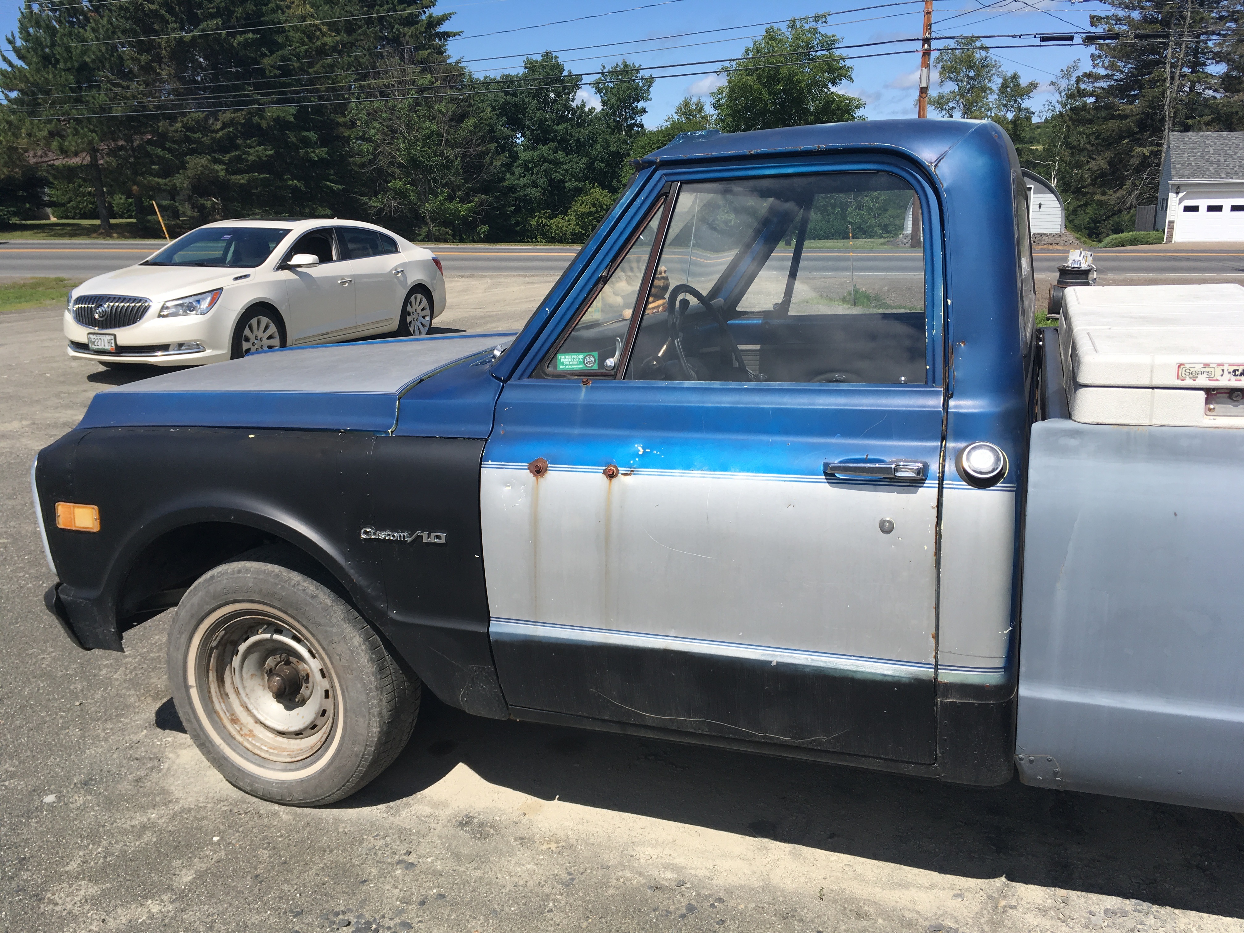 This was my grandfather's Pickup truck. It was bought in 1973 with 90,000 miles on it. It was originally used to haul canoes to California. It had a 307 V8. The pictures below show the truck after it had been painted by my father from a yellow to the two tone blue.