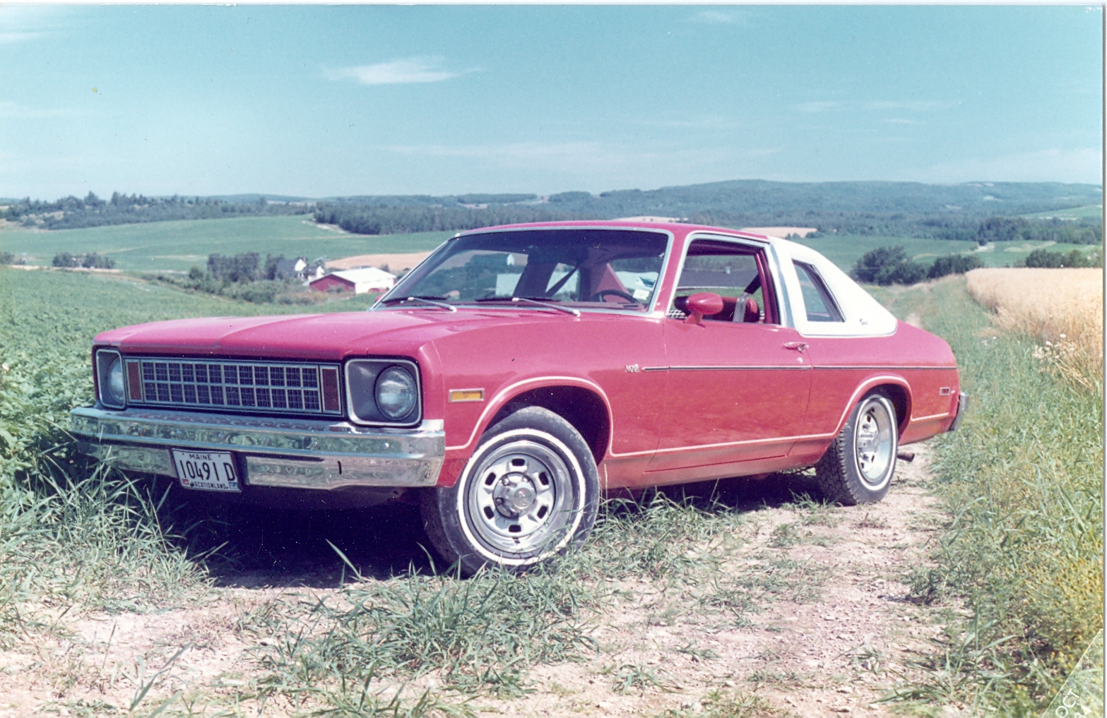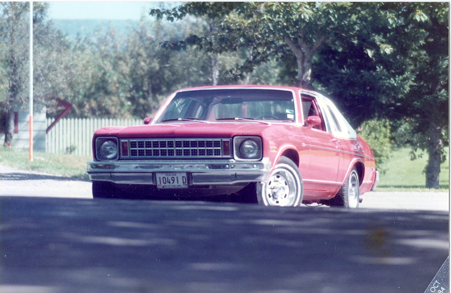 This car was purchased from my aunt by my dad. At the time it was all red and starting to rust. Dad bought the car to pull our sailboat. It did a very good job of it with its 5.0L V8 with 140hp but gobs of torque. Dad also used it with the 81 Buick Regal to drive to work. After much use, the front end and exhaust system needed some work, and along with insurance and registration, no longer was cost effective to drive and was parked. These pictures show the Nova being ready to be taken away by some man who wanted it.