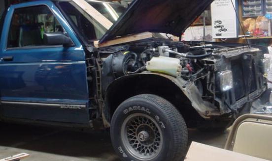 Above are two pictures, the first of my nice wiring harness job, the second my new fender. It too is off a 1994, this time an S-15 Jimmy.