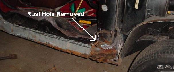 The below picture is of the old rocker panel removed. The inner panel was undamaged with mild rust on the panel next to the wheel.