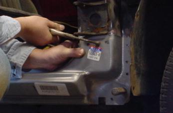 Here is a final shot of the rocker panel installed. My dad is on the ground finishing up.