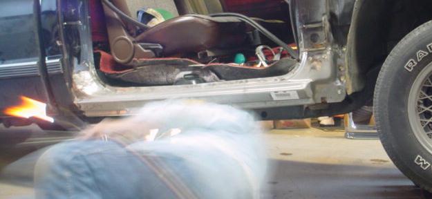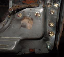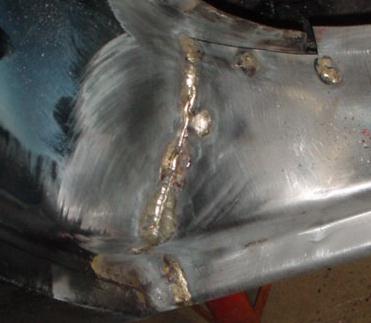 Below is the seam I brazed, along with my father securing the lower portion of the new rocker panel.