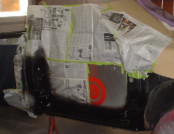 Below are the door and the fender painted. With the interior of the door removed, the outside was taped off and the door was painted black. This way when the truck is painted in the spring, the door jams will be the right color. The same was done with the fender. (It's smooth, the picture is just compressed).