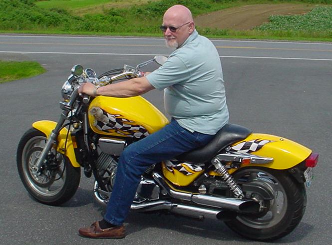 At about 82,000 miles, my cousin (after moving back to Maine for a while), moved to Arizona. Instead of taking the truck with him, he gave it to his dad, my uncle, Clarence. Then a few years ago my uncle had the truck painted solid black. I don't have a good picture of my uncle and the truck together, so here is just a good picture of my uncle. (He's on Randy's bike ((Keith's brother/my cousin)). I eventually got the truck at 112,000 miles.