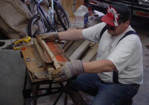 Next is my father, John, shaping a new rocker panel from some scrap sheet metal.