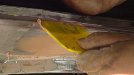 Once welded, the welds are ground as flush as possible and body filler is used to fill any gaps.