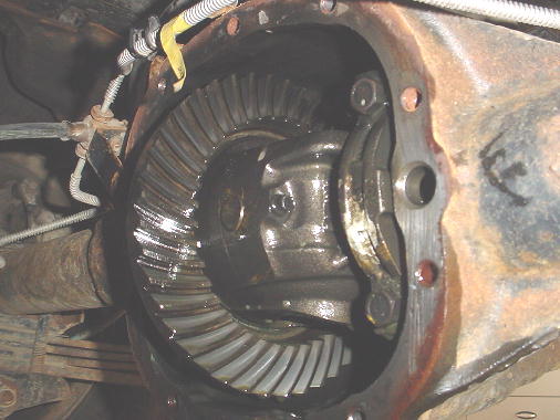 Not much to say...unbolt the cover, drain the oil, inspect the gears, clean the cover, install the cover with new gasket. Don't forget the oil afterwards. This rear end was missing the magnet...maybe I'm old fashioned, but they used to include them. Anyways, it'll have one next time...