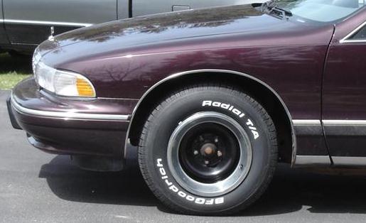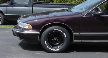Well, this wasn't quite the path I wanted to take with my wagon, but so far things have worked out pretty well. My original plan was to purchase some new Impala SS 17" x 8.5" wheels in 5x5 bolt pattern, throw on some 255/55 R 17 tires, and be done with my summer wheel set. I'd leave the stock wheels for winter snow tires. Well, Imp SS wheels are expensive, and so are the tires...about $1200 all said and done. I don't want to float that sort of money right now into just wheels and tires, so I needed another plan.