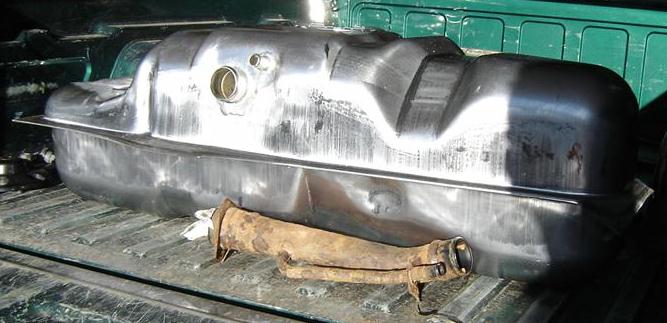 Most of the tank consists of two layers....flaked off rust, and weak inner structure (which leaks gas). I'll need to reuse the tank filler pipe, so I'll need to strip, clean, and POR-15 it to make sure it doesn't weep.