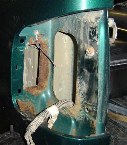 I removed the taillights for wiring access and found some minor rust around the openings. These will be treated and painted too. Great place to get access to the inner bed panels for future cleaning. Some of the sheet metal directly below this point inside the bed is gone due to rust. It is not visible from the outside and doesn't appear to have much structural need.
