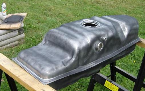 I did not use POR-15 on the gas tank due to it's size, it's just too big. After the primer I applied a topcoat of gloss enamal black. Same with the rear end cover. It visited the wire wheel on the bench grinder to remove flaky material before painting.